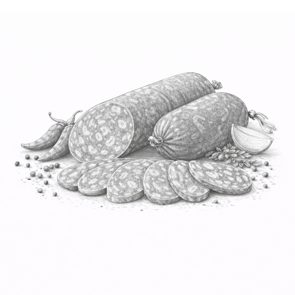 Чоризо подходит для холодной нарезки, мясных ассорти, а также для приготовления блюд - пасты, пиццы и закусок. Натуральный состав и традиционная технология делают её универсальным мясным деликатесом для дома и гастрономических сетов.