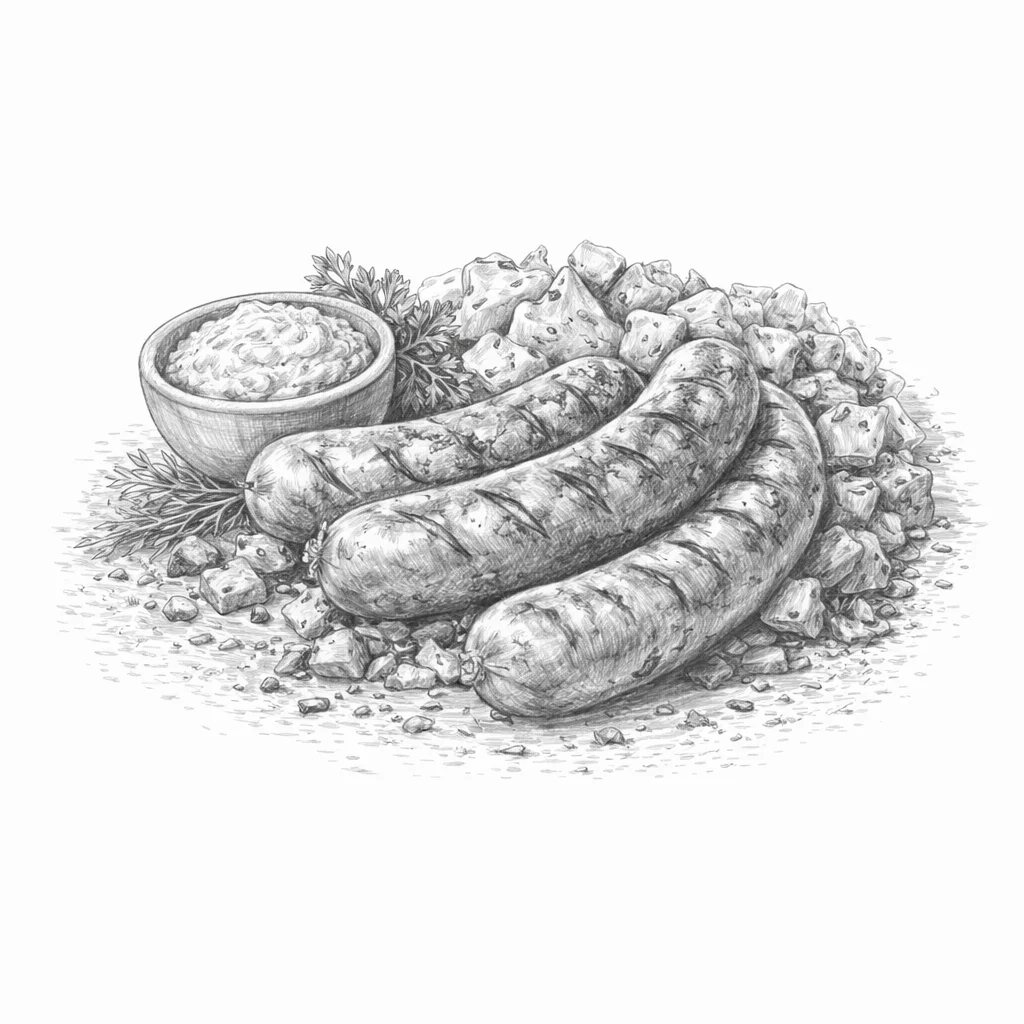 с хреном или горчицей , подается с пюре или гарниром на выбор