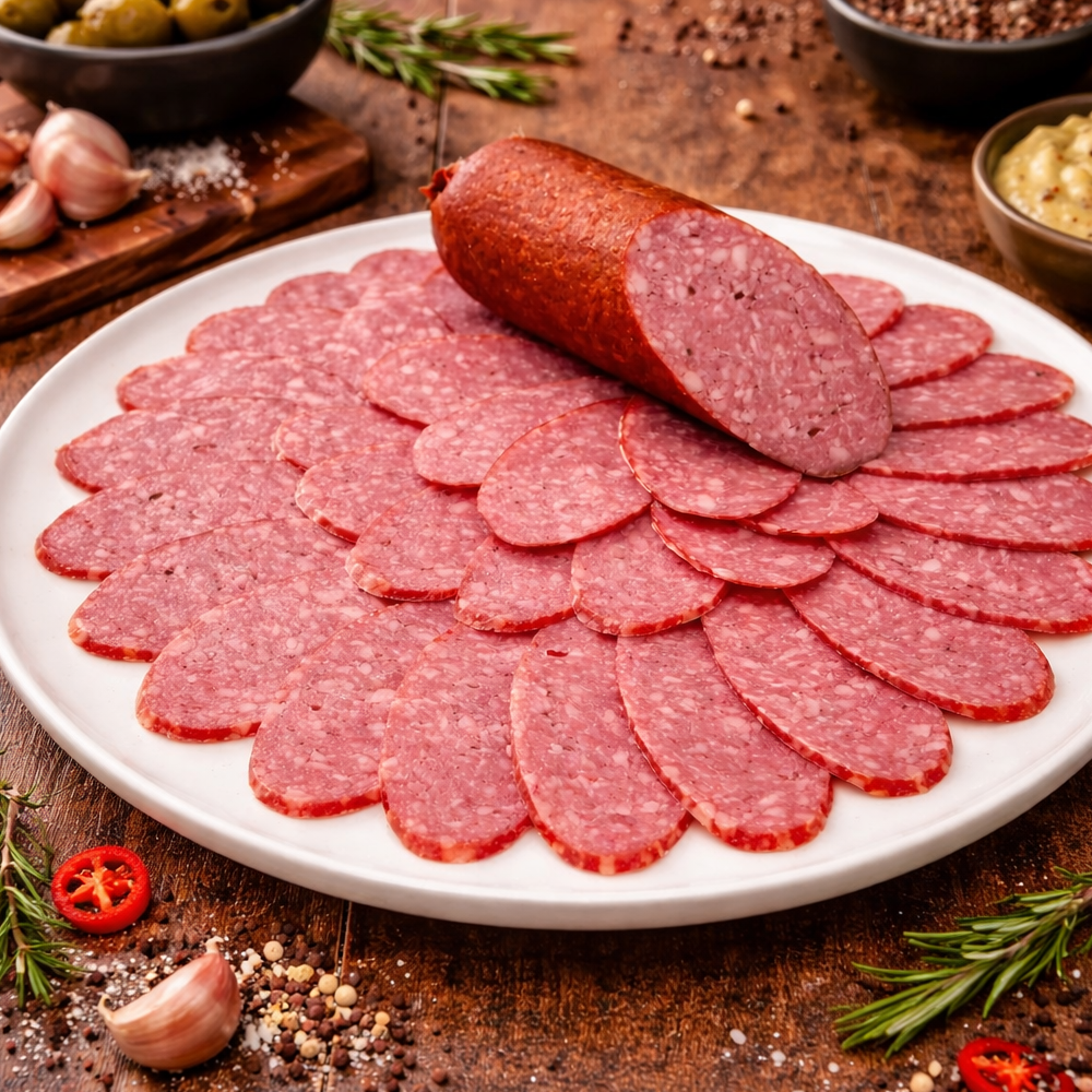 Сервелат подходит для холодной нарезки, мясных ассорти и плотных закусок. Натуральный состав и традиционная полукопчёная технология делают его востребованным продуктом для тех, кто ищет насыщенные и по-настоящему мясные колбасы.